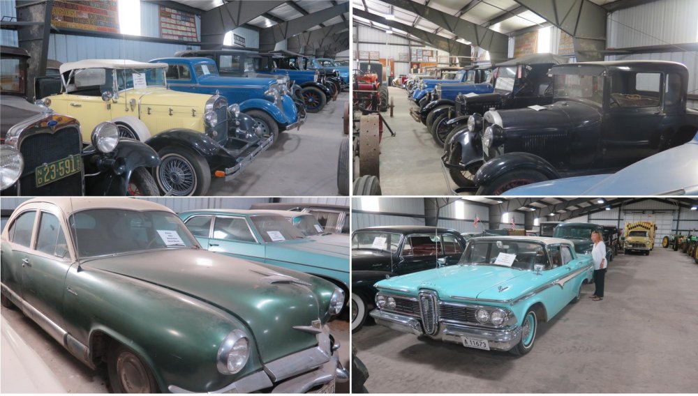 In North Dakota just a few miles south of the Canadian border we spent a night at the Dale & Martha Hawk Museum. It consists of many metal frame building housing a large diverse sample of historical farm and living machines. Cars that ranged from Model T's to Kaisers.