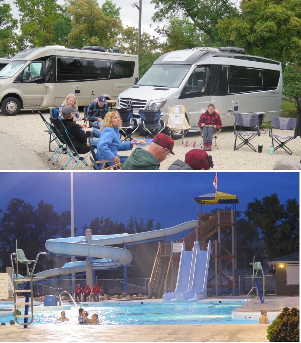 The first two nights in Winkler we stayed at a nice city campground with several other LTVs. Adjacent to the campground was a nice water park supported by Leisure Travel Vans. It was early September and we were all bundled up but people were still enjoying the water park.