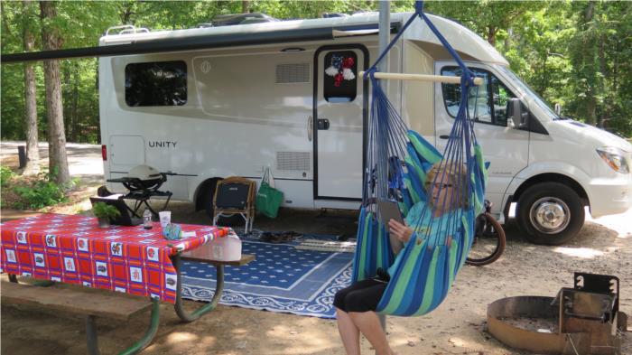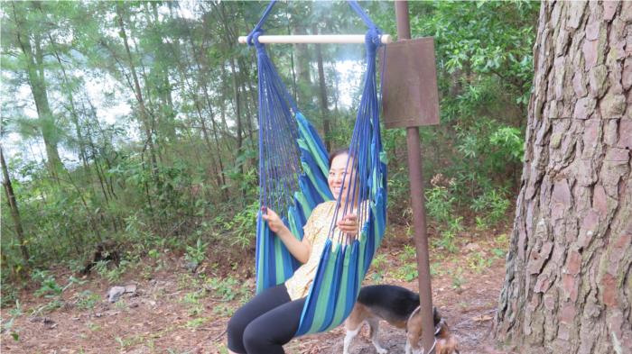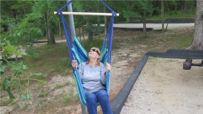 Back at the campsite Bobbi was able to try out her swing chair