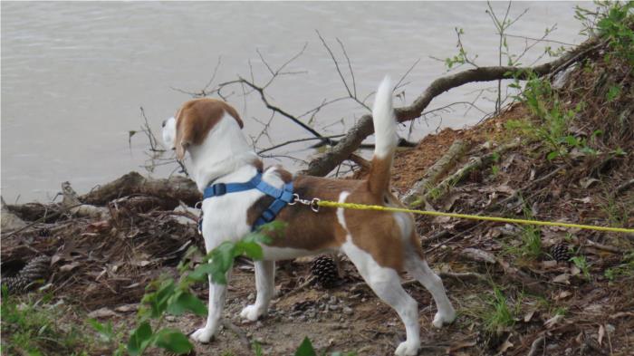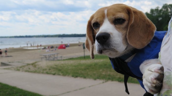 The bike trail ended at a beach and Luna thought the people were nuts to go in the cold water.