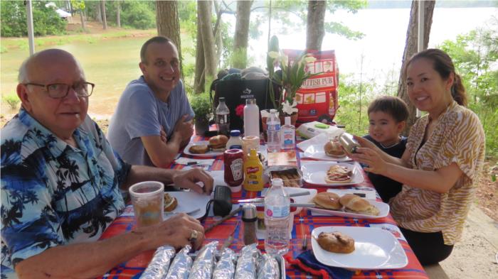 and we enjoyed hamburgers and corn from the grill