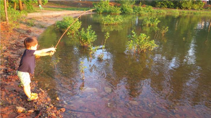 The biggest catch of the day was a sand fish that was happy when Micah put it back in the water.