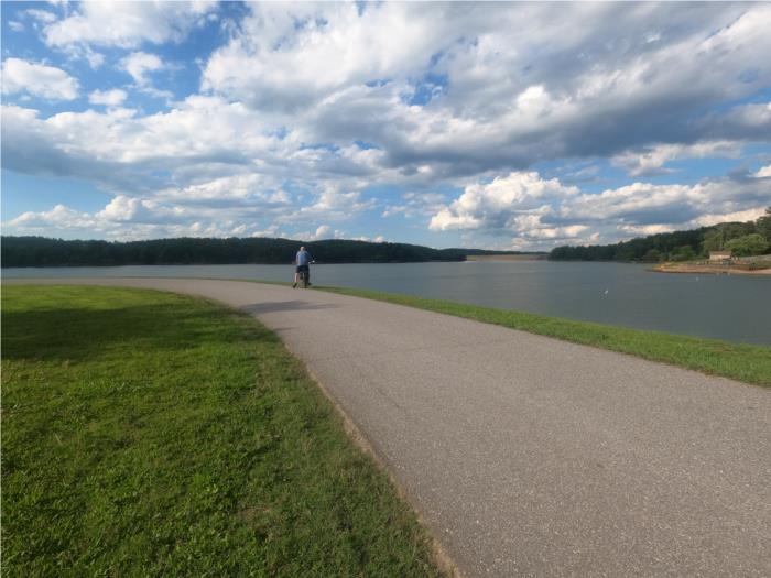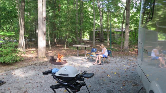 Near Washington D.C. is the Lake Fairfax County park. It has picnic tables, a nice water park for the children (closed due to virus), skate board park, fishing area, nice trails for cyclists, BBQ area, football fields, volleyball fields, hiking and of a campground. The campsites only had electricity but we were able to fill our freash water holding tank on the way in so no problem.
