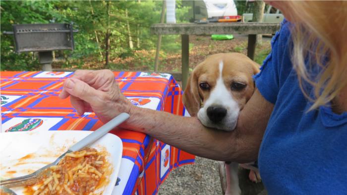 Another evening picnic where Luna again tried the "poor me" beg.