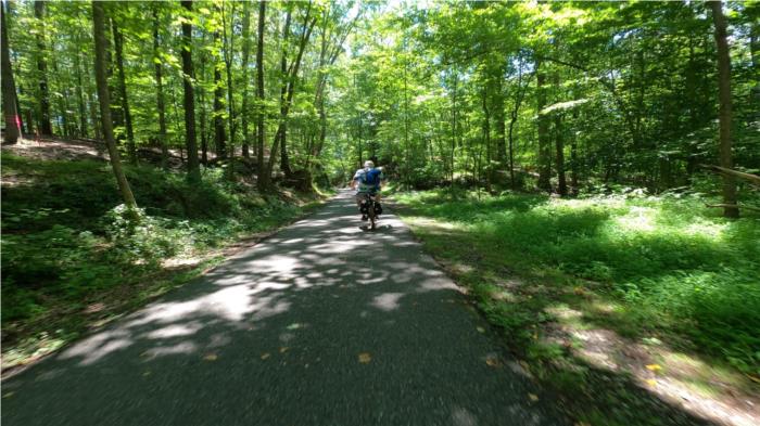 In Lynchburg there is a nice 9 mile bike path on an old RR grade.