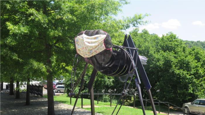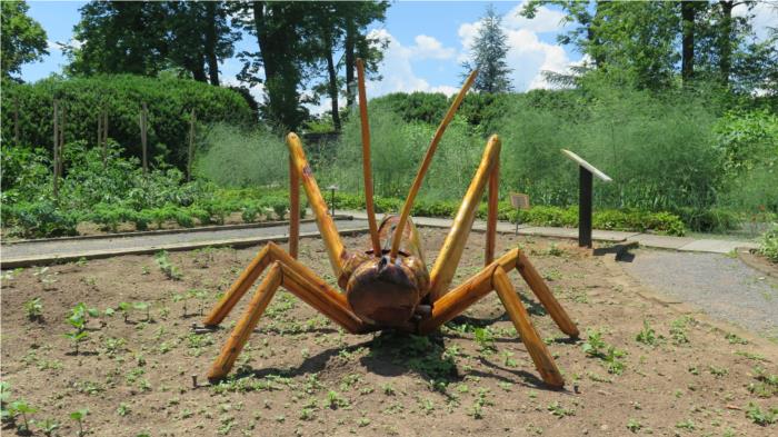 In addition to beautiful gardens, the grounds have a traveling display of large wooden bugs.