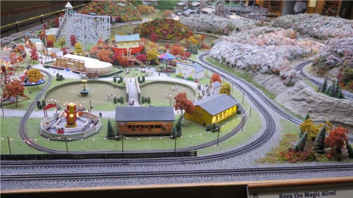 A huge miniature village with many trains and facets of life in Pennsylvania.