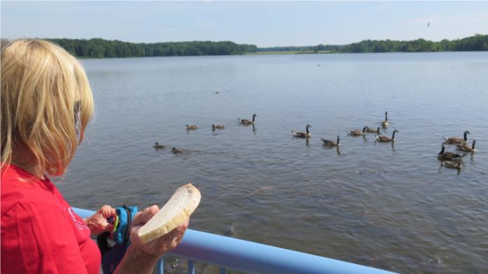 Nearby on the lake is a large gathering of duck and carps. For $1.00 you can buy a loaf of stale bread for tossing in the water.
