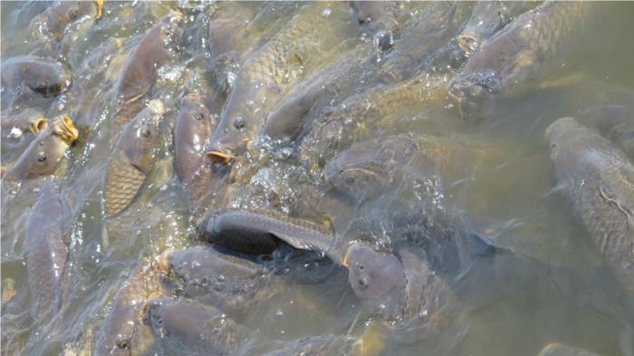 Watching 50+ pound carps fight over a slice of bread reminded us of dinner when the boys were young and still at home.