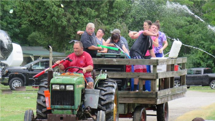 Billed as "guests vs staff" we assumed it was volleyball or something like that in the pool. Actually, it was the staff on a wagon with water balloons and cannons