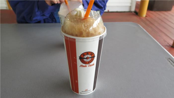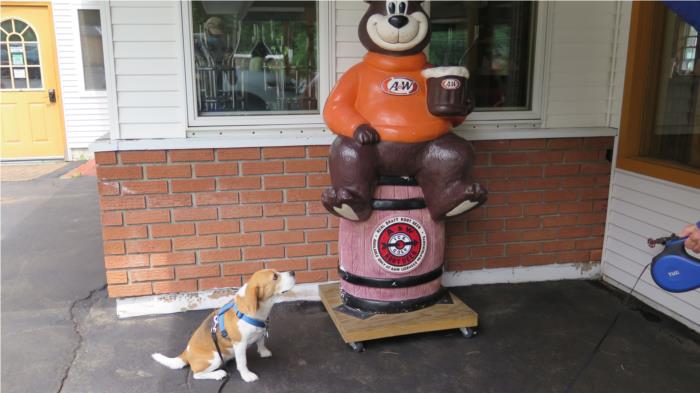 In town we found an old fashion A&W with outside seating. Luna wasn't sure what to make of the bear