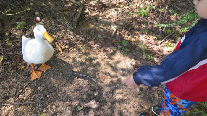 Yoshi made friends with the neighbor ducks