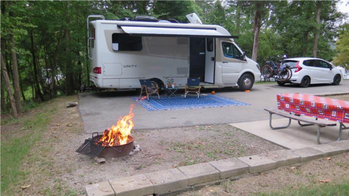 There are very few Leisure Travel Vans in the Eastern US and we get excited anytime we pass one on the road. At our campsite in Bristol, TN a fellow LTV pulled right in next to us.