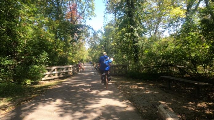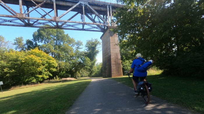 There are several bike paths in Nashville, but we chose the Stones River Greenway that followed the Cumberland River. It starts at a park near, what we thought, is an abounded railroad trestle.