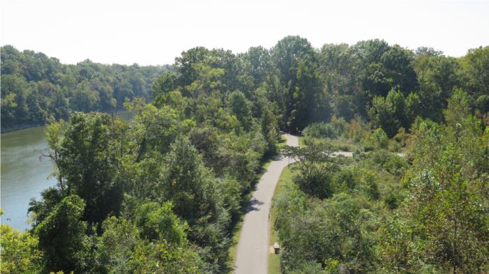 Wide and smoothly paved it follows along the Cumberland River.