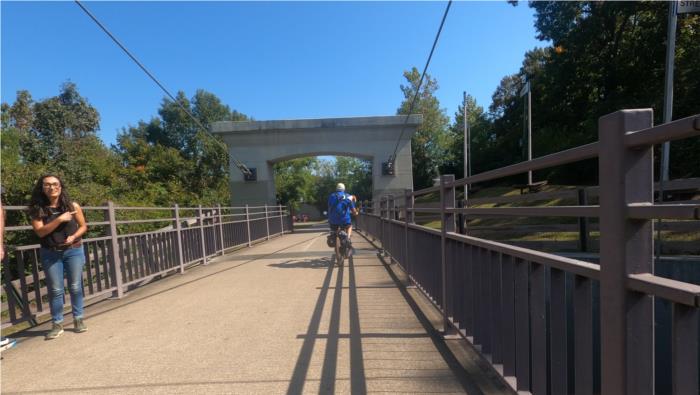 and the Cumberland River on a very nice suspension bridge.