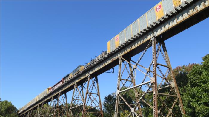 We learned that what we thought was an abounded railroad trestle is actually still in use. Scary!