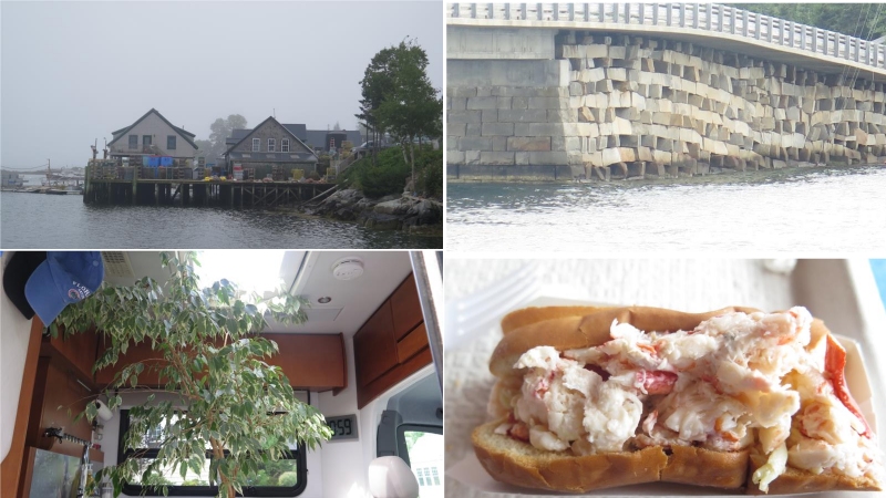 Flick & Sandie had just moved into their new home in Topsham, Maine, located between Bath and Freeport, the home of LL Bean. Nearby was the Cribstone Bridge, a 100 year old bridge that uses granite slabs positioned to allow the tide to flow freely. Their movers would not transport Sandie's tree over the state line, so we went to Massachusetts and carried it to Maine in the RV. Of course time for one last lobster roll before we headed south.