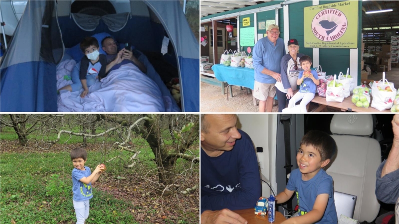 Micah and Yoshi drove up from Atlanta and while Micah worked remotely we took Yoshi to an apple orchid. Later, we taught Yoshi to play Left-Right-Center and he kept winning.