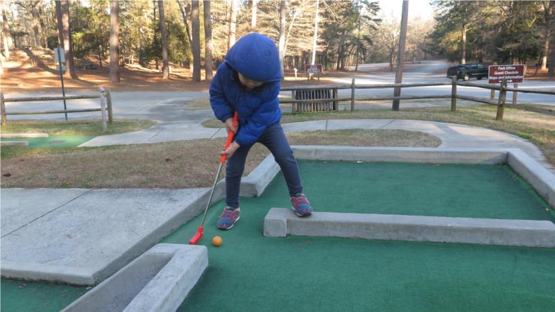 There is a mini-golf course in the park and we had a great afternoon playing golf with Yoshi.