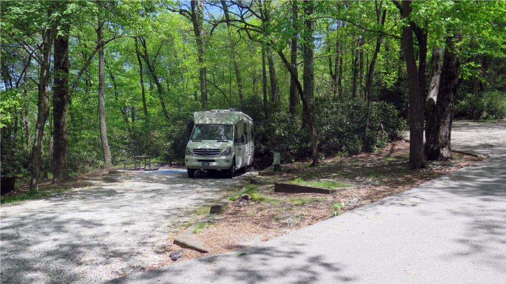 Black Rock Mountain State Park is near Clayton, Georgia. Located on the continental divide, it is Georgia's highest State Park with some of the most outstanding scenery in the Blue Ridge Mountains. The road up to the campground has a lot of turns and the sites are small but no problem for us.