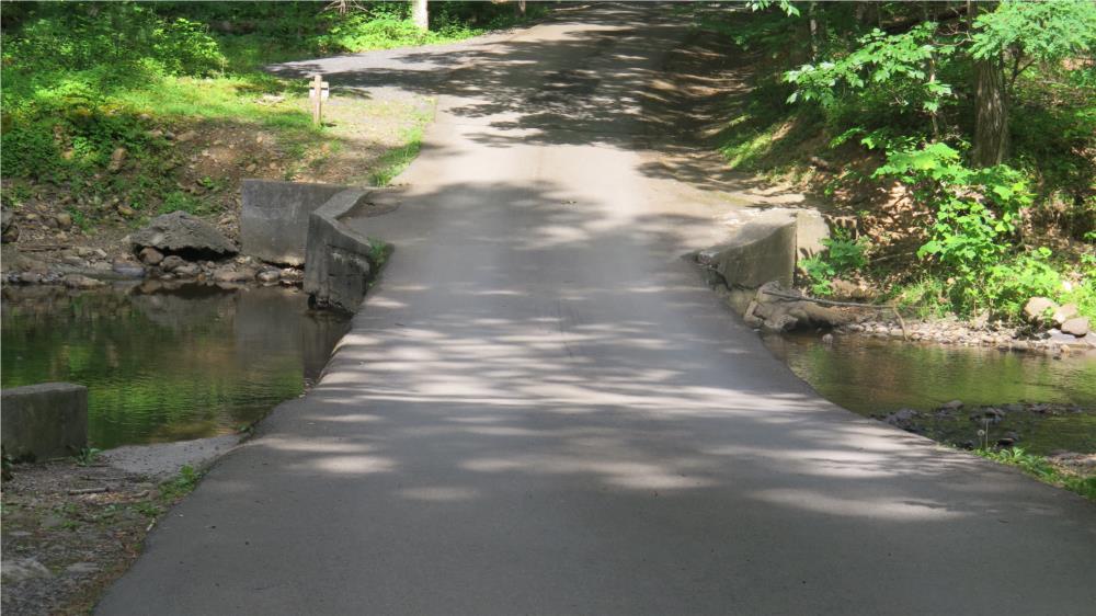 Douthat State Park in southern Virginia is listed on the National Register of Historic Places because the park's design influenced the development of parks nationwide. I hope that the entrance bridge didn't influence other parks. Yes; that is actually the entrance to the campground.