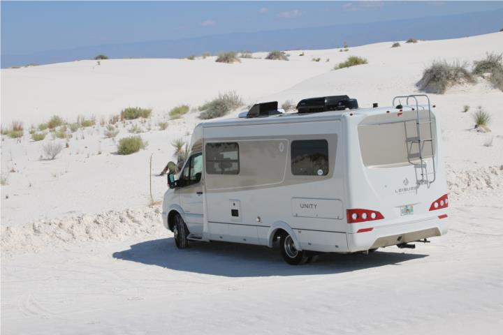 Being lighter and shorter than most RVs, we can even drive on the sand at White Sands New Mexico.