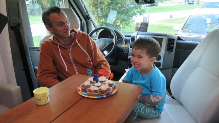 With the ability of the cab front seats to rotate, we can seat four for dinner.